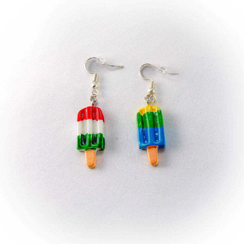 Helado blanco, verde y rojo, Helado amarillo, verde y azul